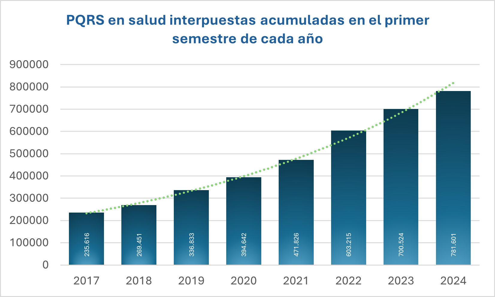 Gráfico 3. PQRS interpuestas en el primer semestre de cada año, 2017 – 2024
